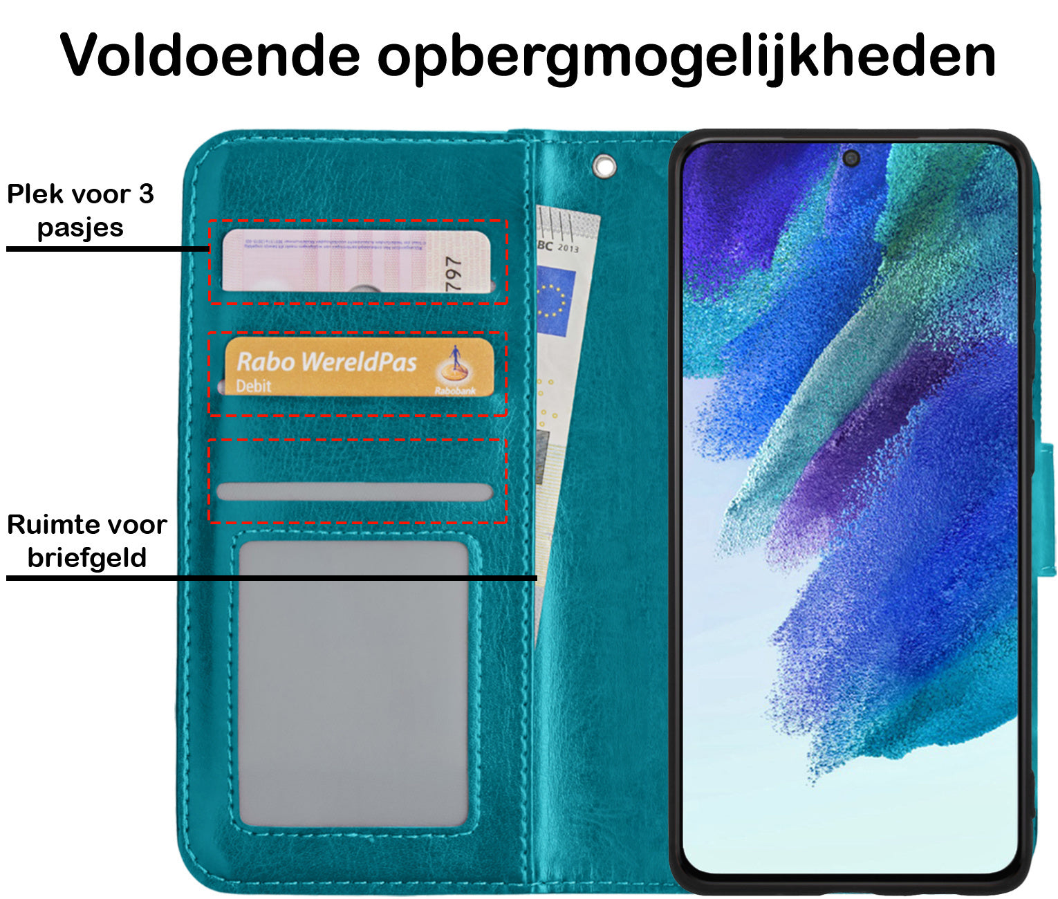 Samsung S21 FE Hoesje Bookcase Cover met Kaarthouder - Turquoise
