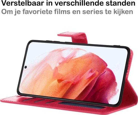 Samsung S21 Hoesje Bookcase Cover met Kaarthouder - Donkerroze