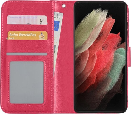 Samsung S21 Ultra Hoesje Bookcase Cover met Kaarthouder - Donkerroze