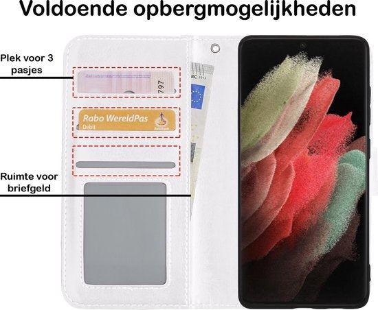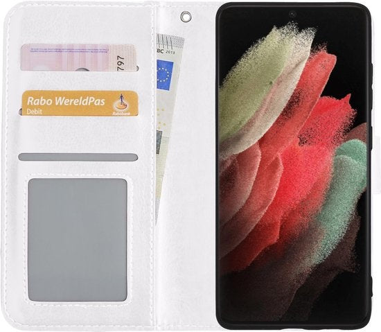 Samsung S21 Ultra Hoesje Bookcase Cover met Kaarthouder - Wit