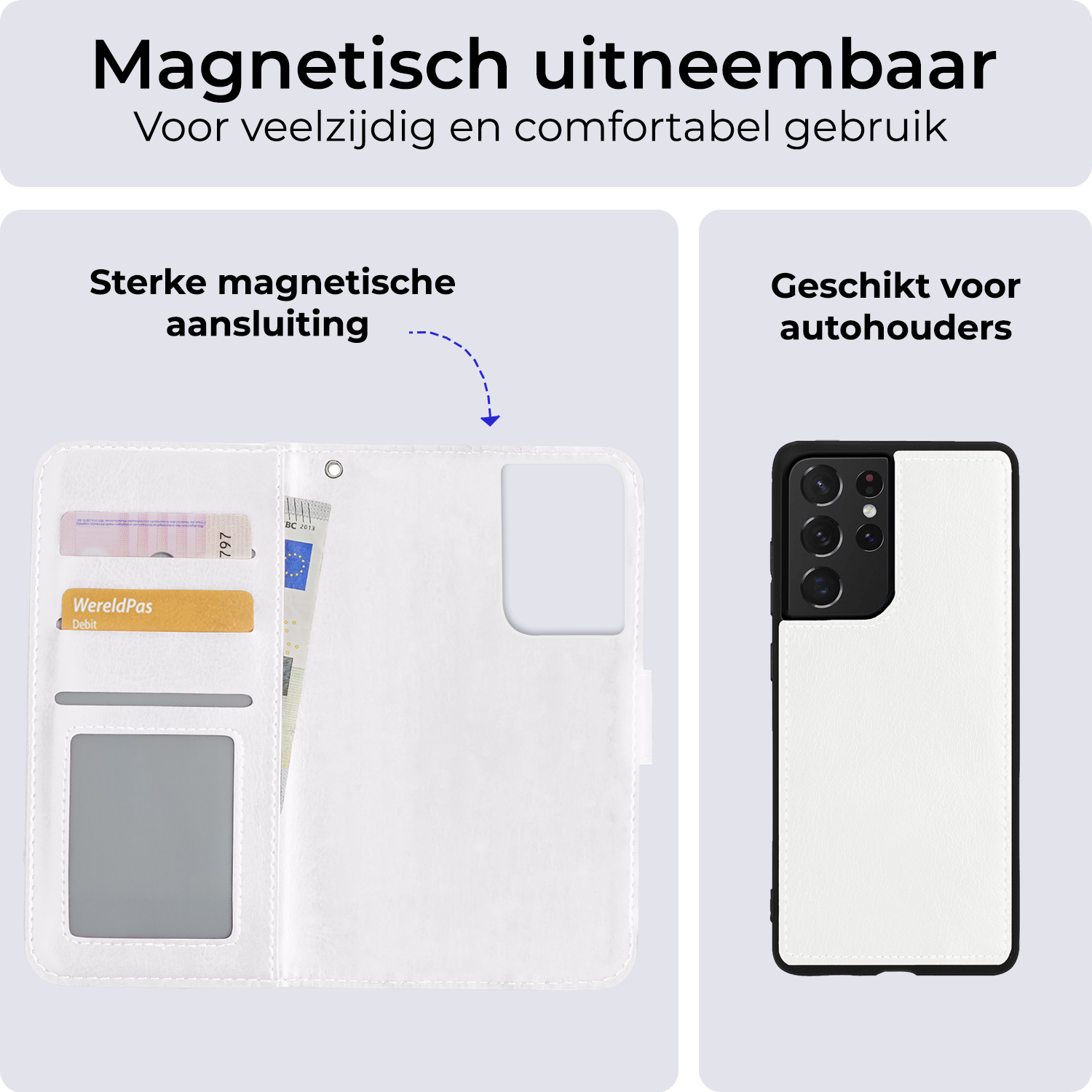 Dankzij het magnetische ontwerp kun je de backcover eenvoudig loshalen van de bookcase. Zo kun je je Samsung S21 Ultra snel en gemakkelijk uit de hoes halen wanneer dat nodig is. De magnetische bevestiging zorgt ervoor dat de backcover stevig op zijn plaats blijft in de bookcase, zonder dat dit ten koste gaat van de bescherming.