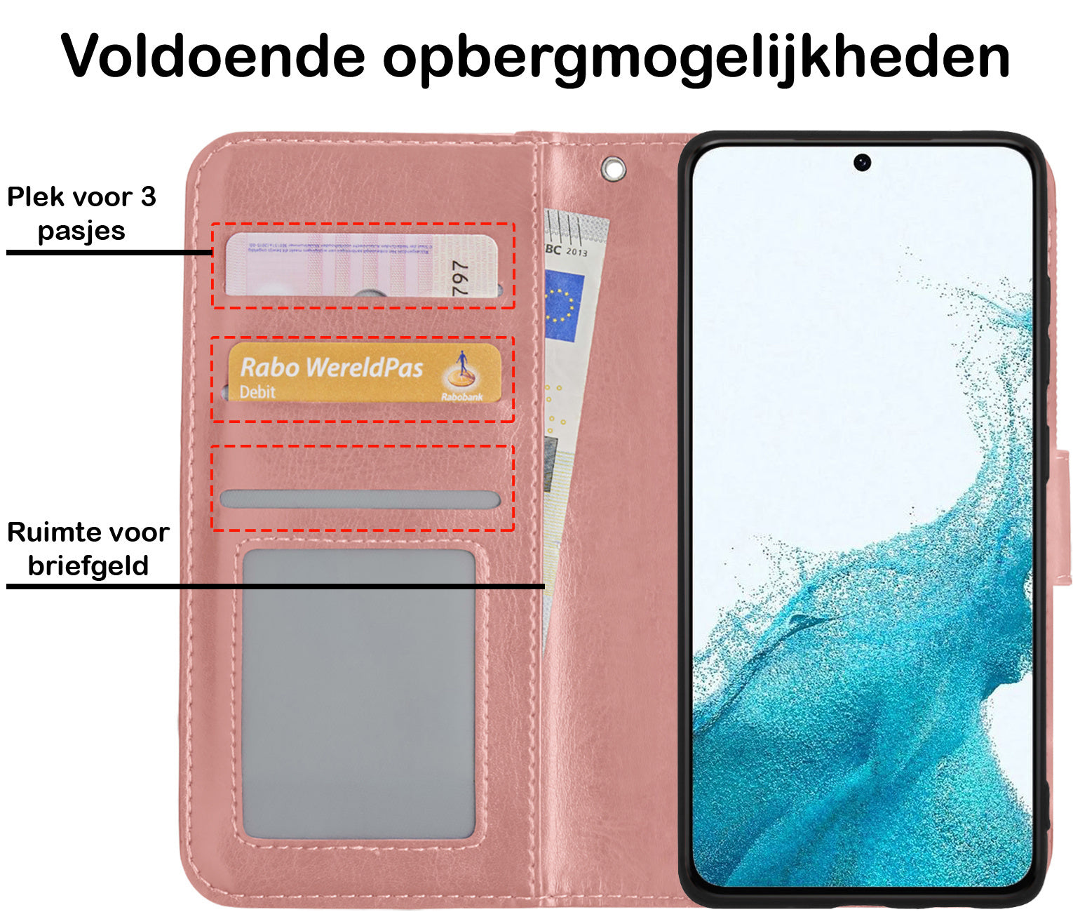 Samsung S22 Plus Hoesje Bookcase Cover met Kaarthouder - Rosé goud