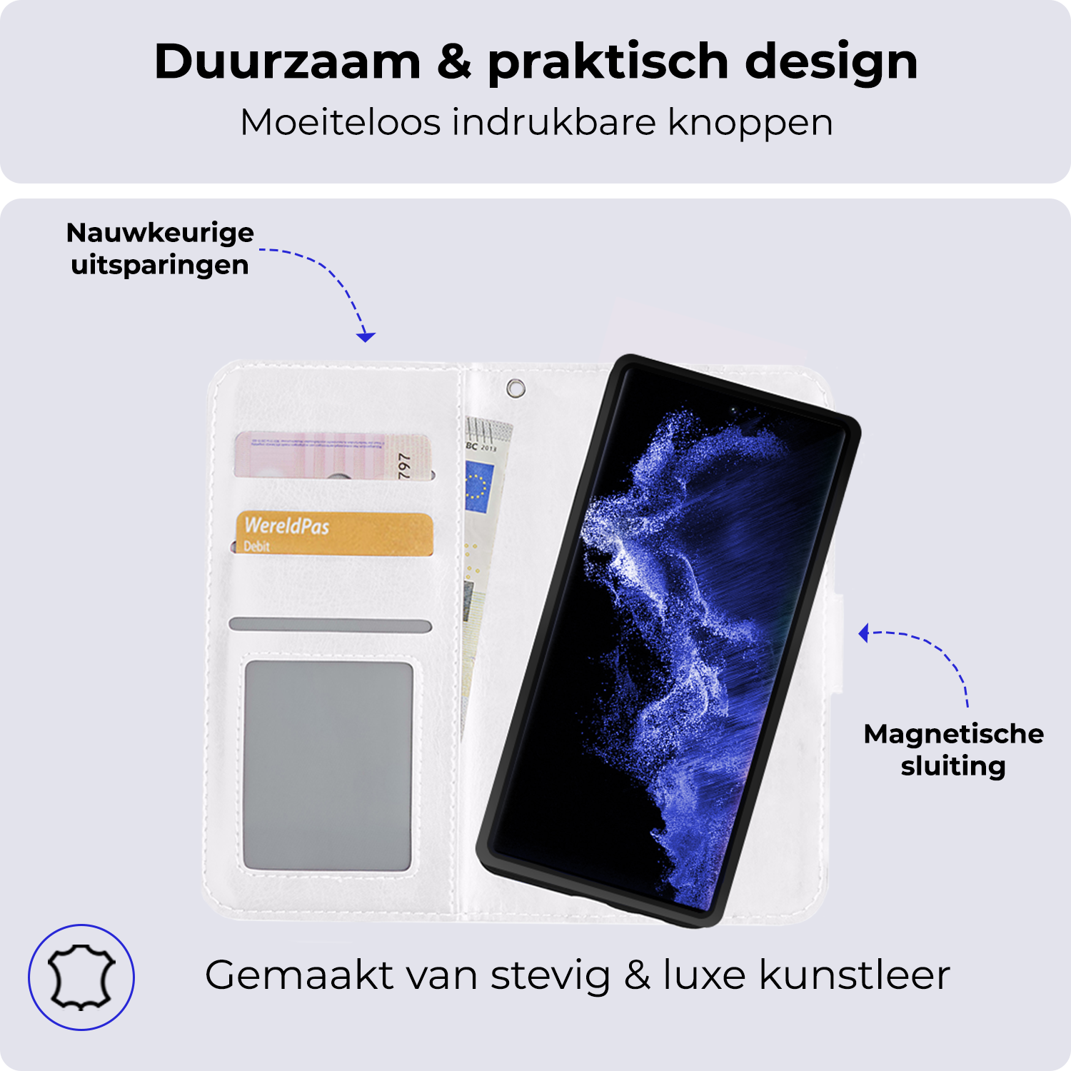 Samsung S22 Ultra Hoesje Bookcase Cover Uitneembaar - Wit