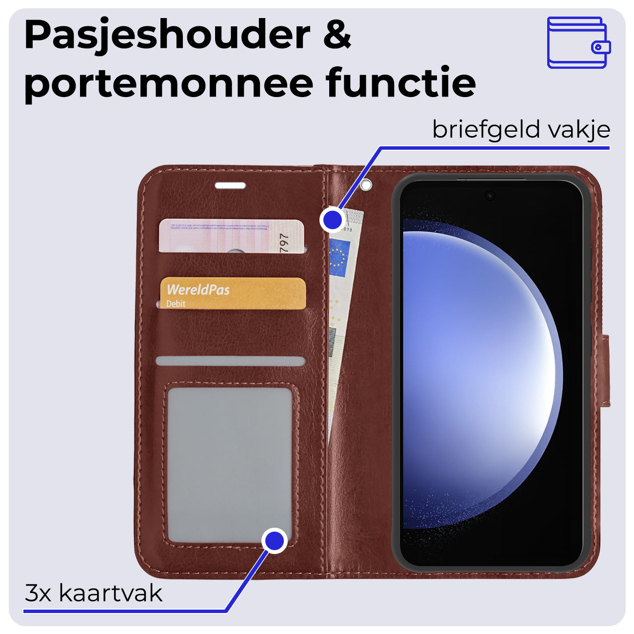 Samsung S23 FE Hoesje Bookcase Cover met Kaarthouder - Bruin
