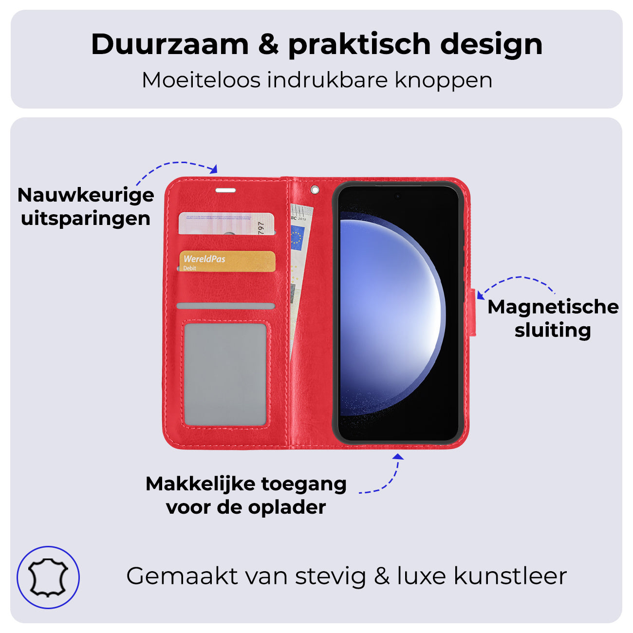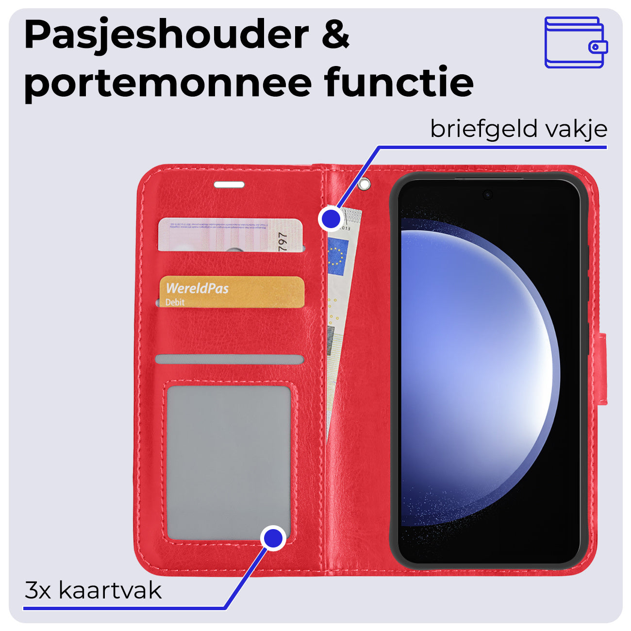 Samsung S23 FE Hoesje Bookcase Cover met Kaarthouder - Rood