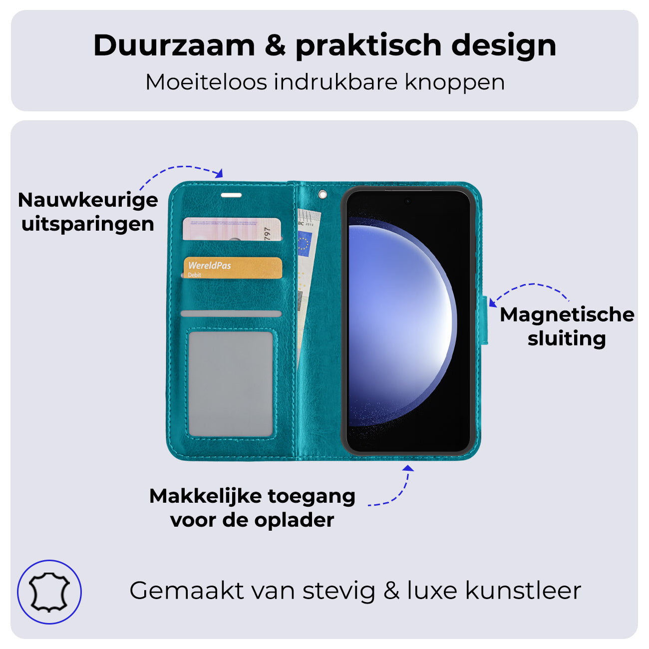 Samsung S23 FE Hoesje Bookcase Cover met Kaarthouder - Turquoise