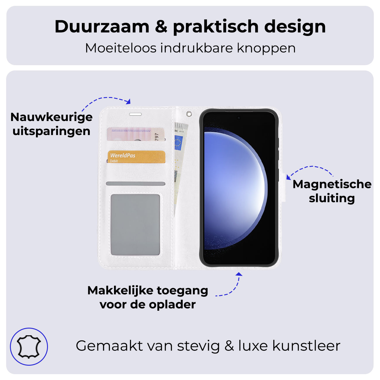 Samsung S23 FE Hoesje Bookcase Cover met Kaarthouder - Wit