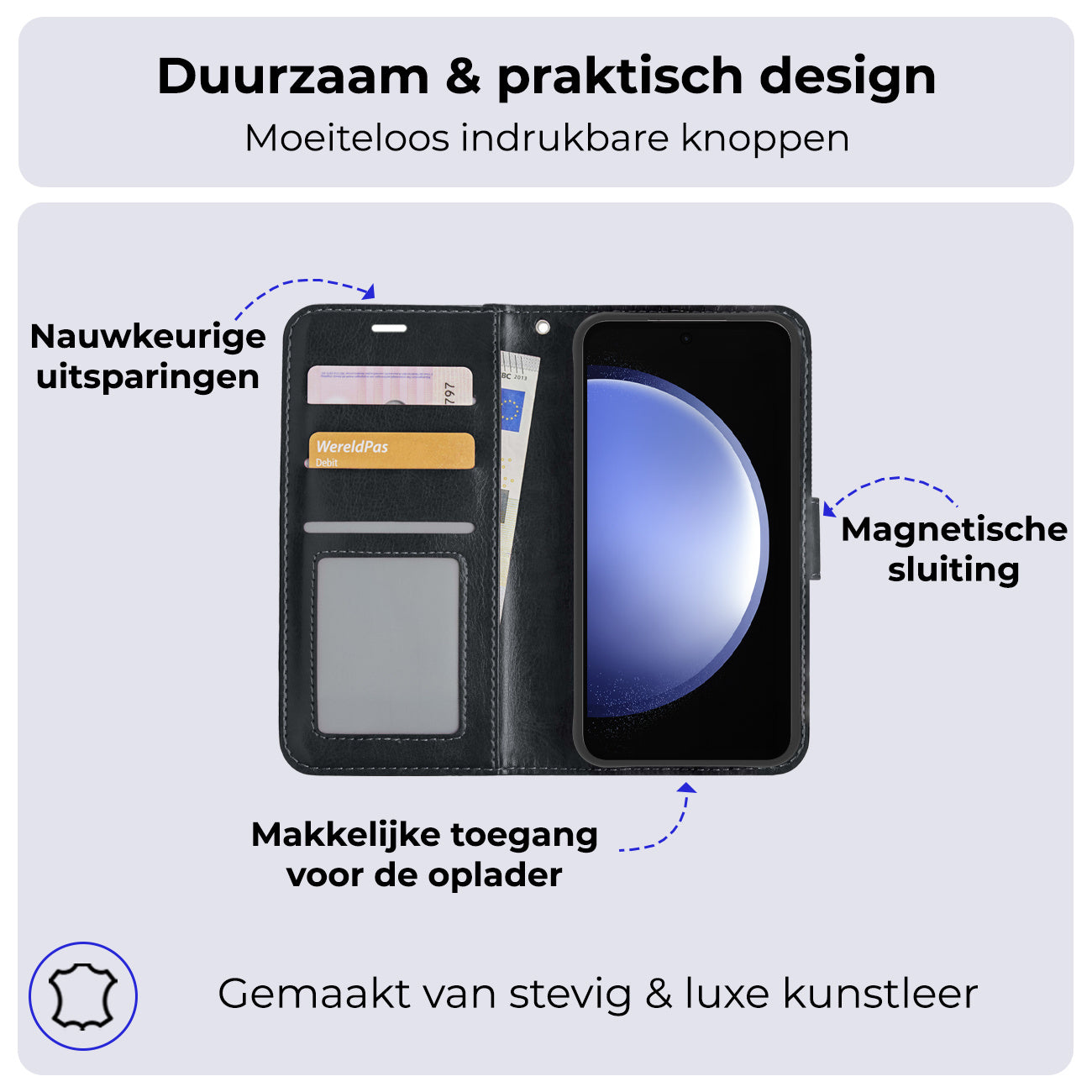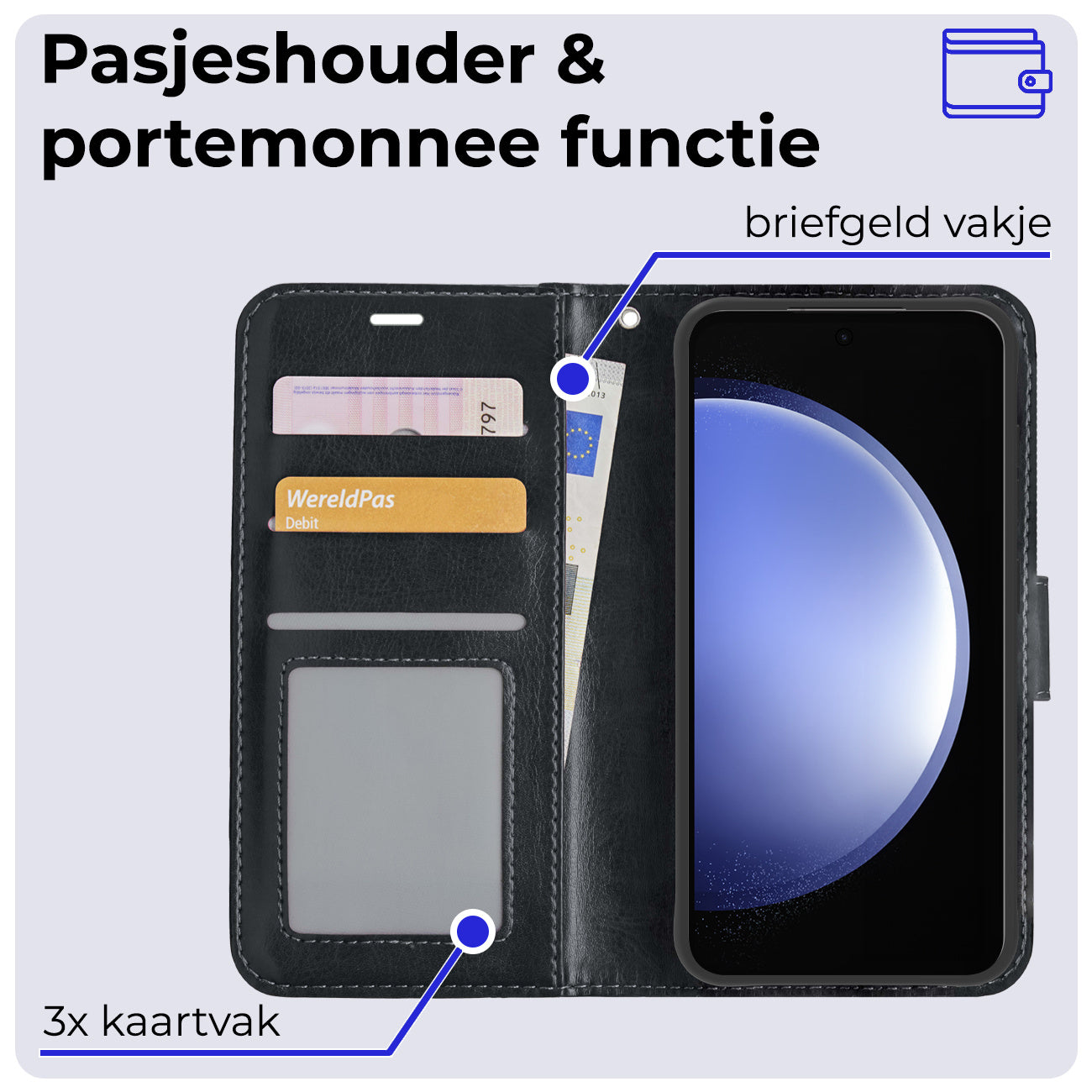 Samsung S23 FE Hoesje Bookcase Cover met Kaarthouder - Zwart