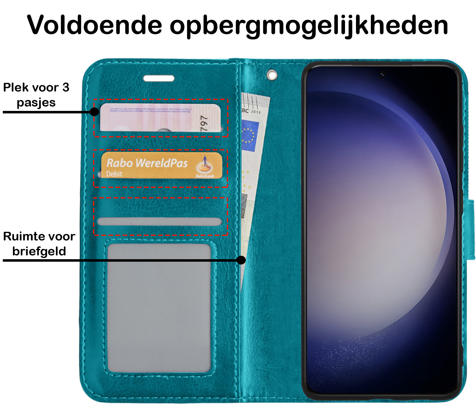 Samsung S23 Hoesje Bookcase Cover met Kaarthouder - Turquoise