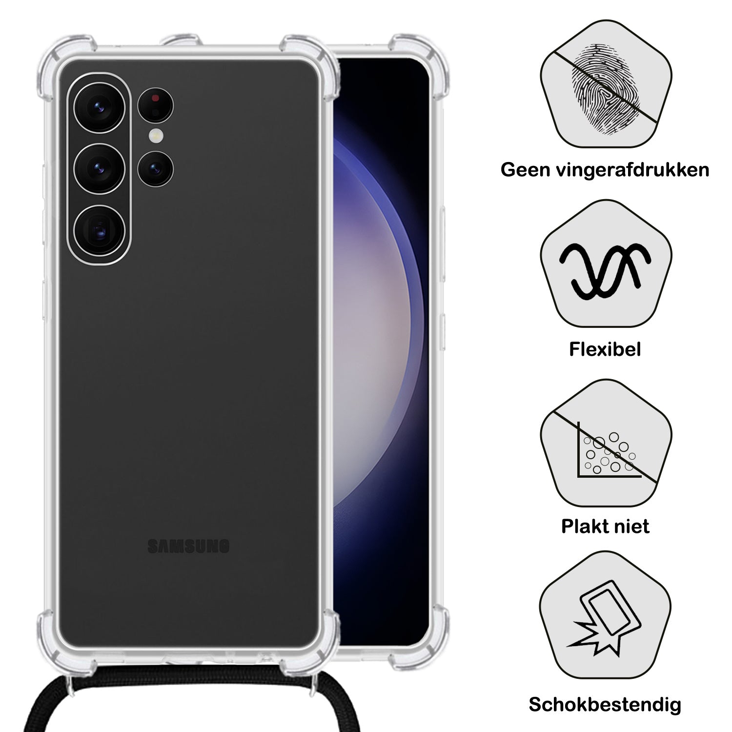 Samsung S23 Ultra Hoesje met Koord Backcover Shockproof - Transparant