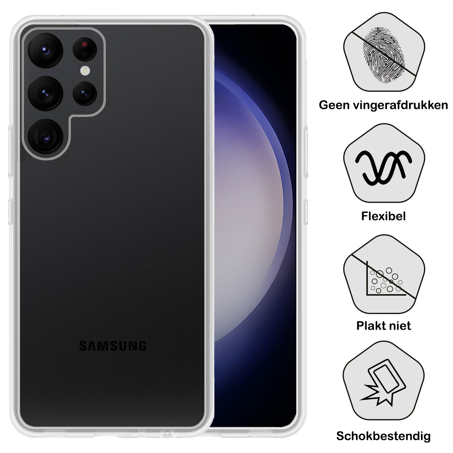 Samsung S23 Ultra Hoesje Siliconen Backcover Lichtgewicht - Transparant
