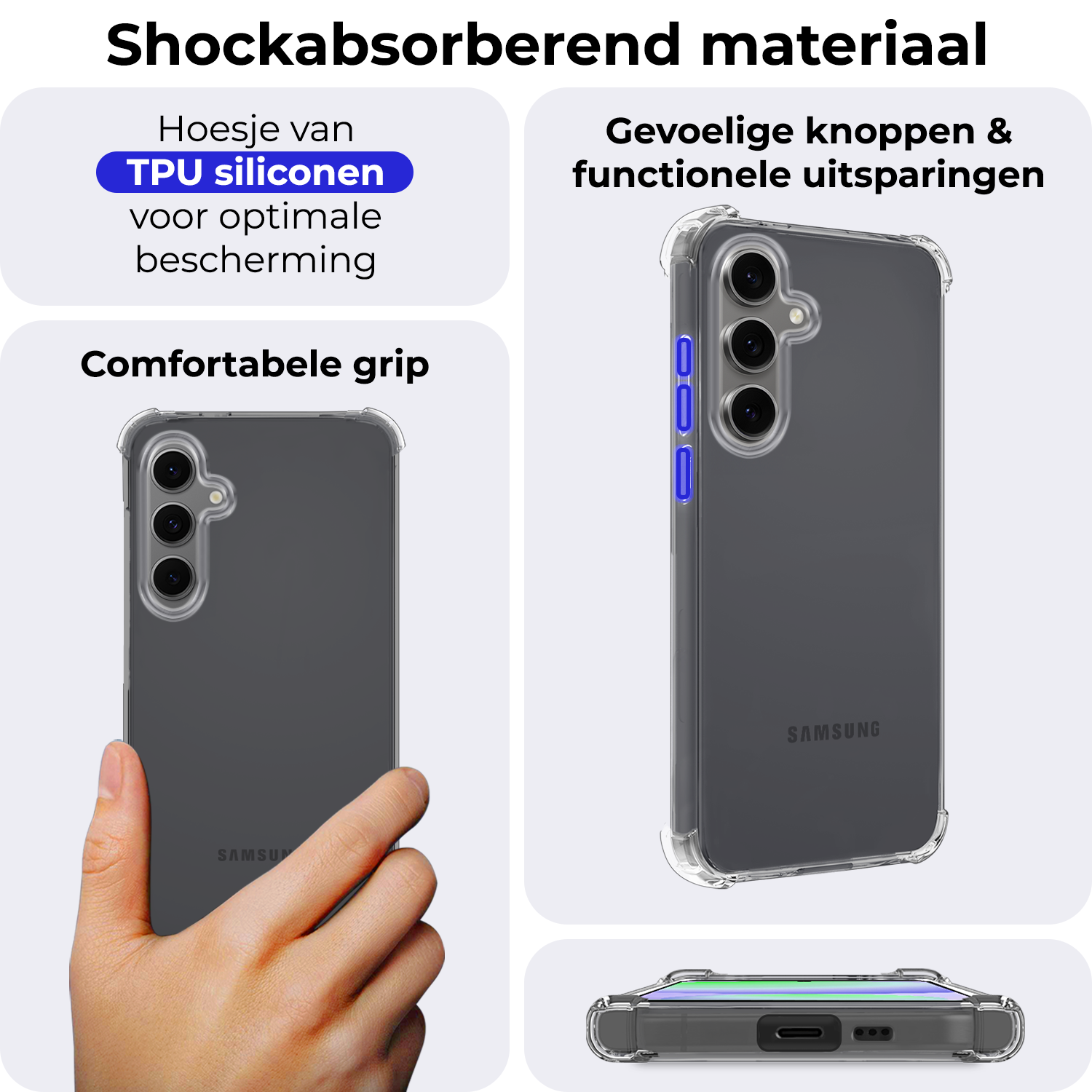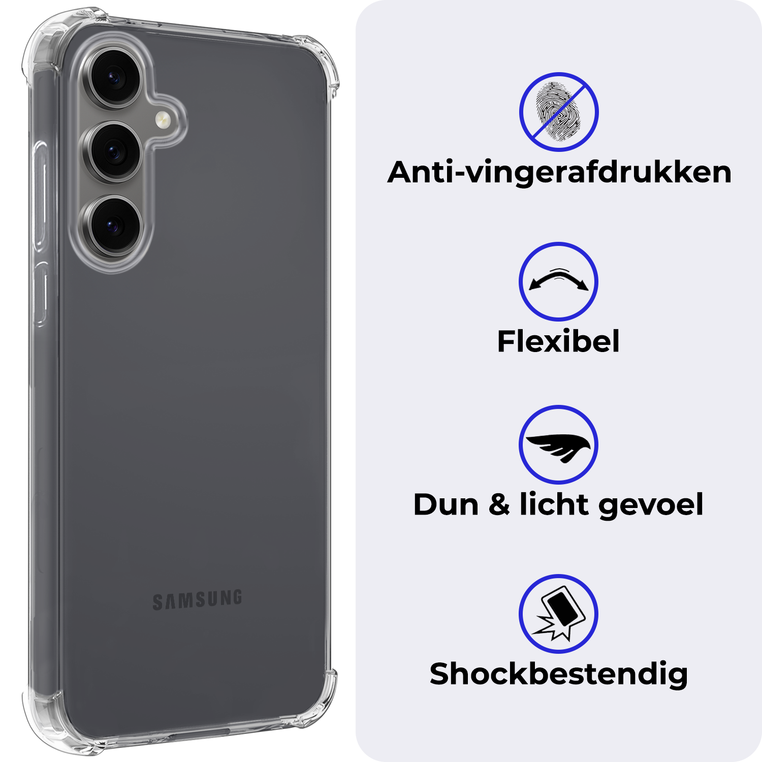 Maak je telefoonervaring compleet met dit stevige en moderne shockproof hoesje. Bestel nu en zorg ervoor dat je Samsung S24 FE altijd beschermd is tegen dagelijkse gevaren!