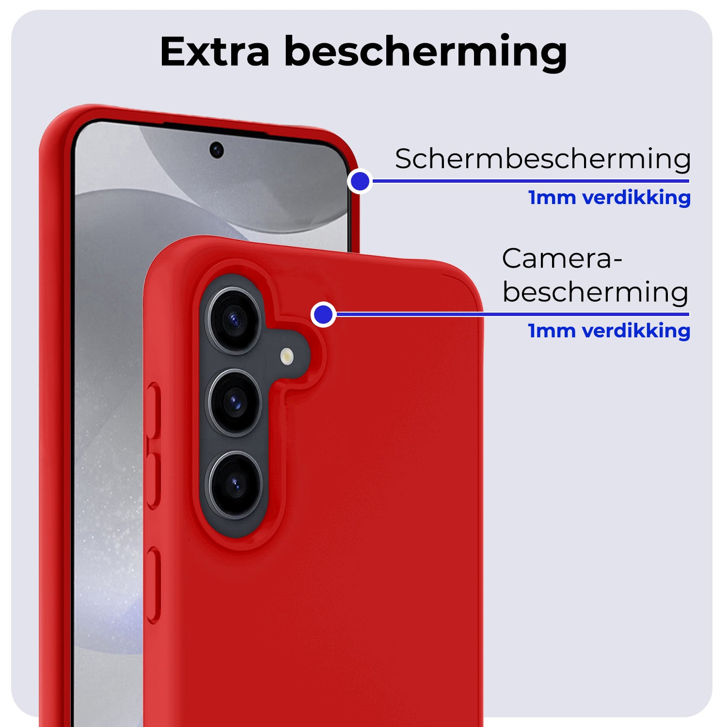 Dit siliconen hoesje voor de Samsung S24 is gemaakt van flexibel en schokabsorberend TPU-materiaal, waardoor het je toestel optimaal beschermt tegen vallen en stoten. De verhoogde randen rond het scherm en de camera voorkomen directe contactschade bij neerleggen op vlakke oppervlakken. Bovendien is het siliconen materiaal scheur- en slijtvast, wat een lange levensduur garandeert.