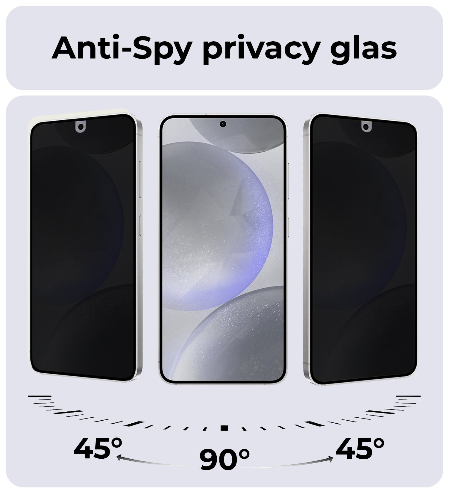 Deze privacy screenprotector voorkomt dat anderen mee kunnen kijken op je Samsung S24 Plus. Vanaf een hoek van 30° wordt het scherm verduisterd, zodat je berichten, wachtwoorden en andere gevoelige informatie alleen zichtbaar zijn voor jou.