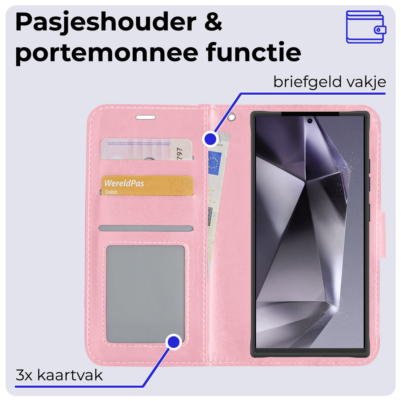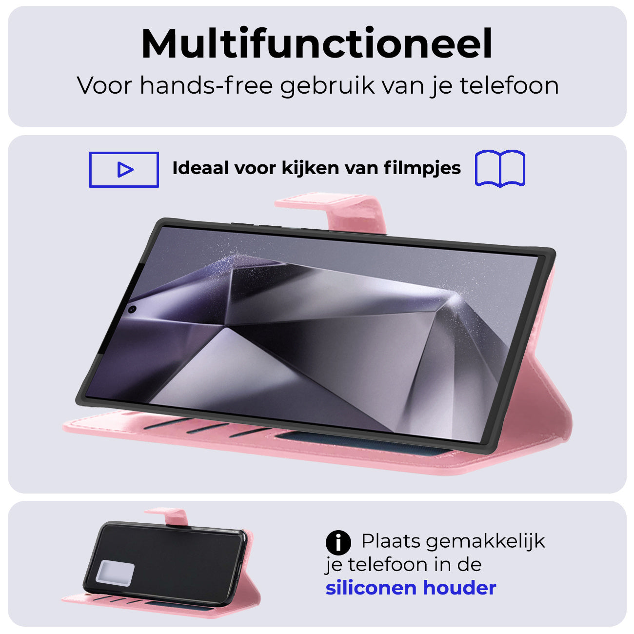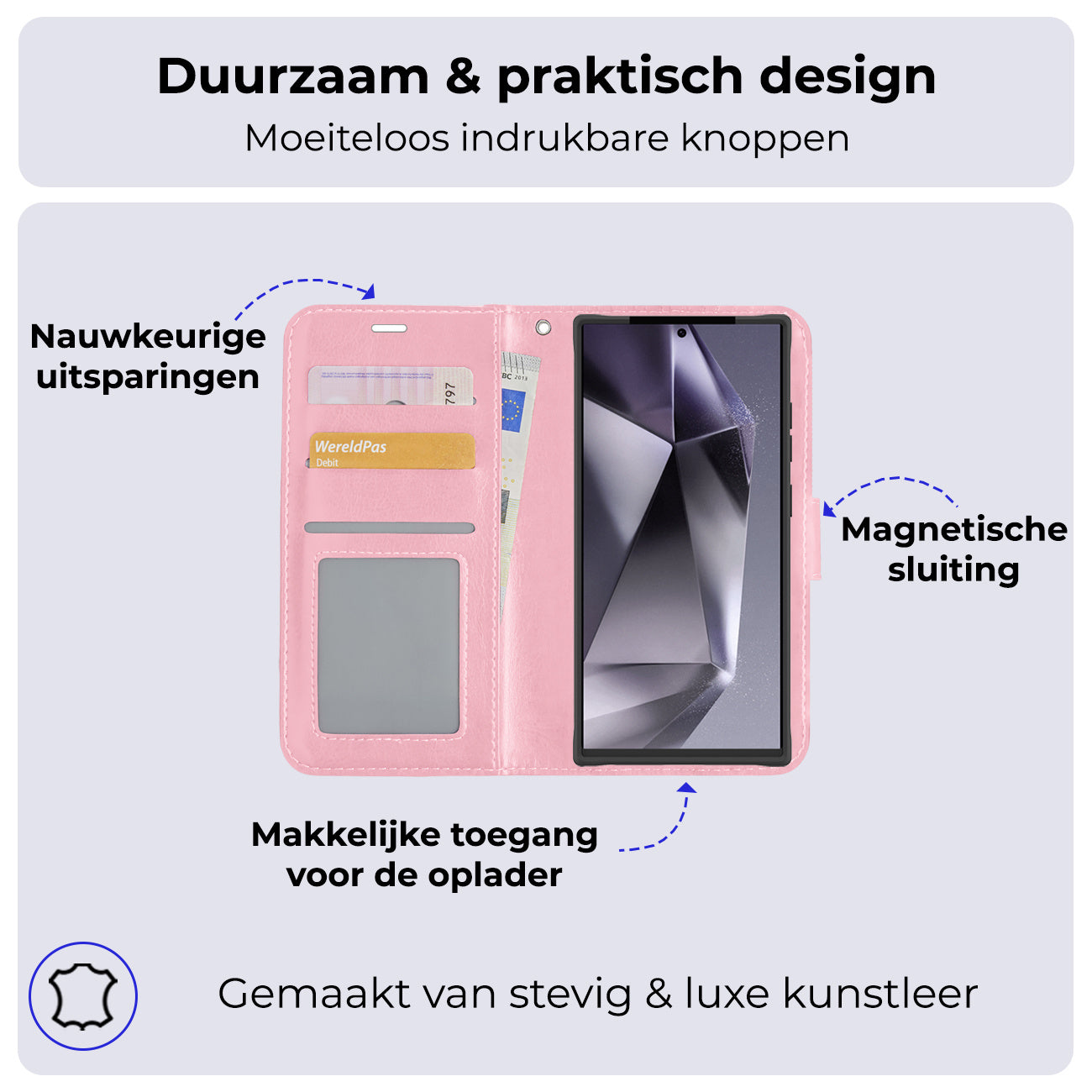 Samsung S24 Ultra Hoesje Bookcase Cover met Kaarthouder - Lichtroze