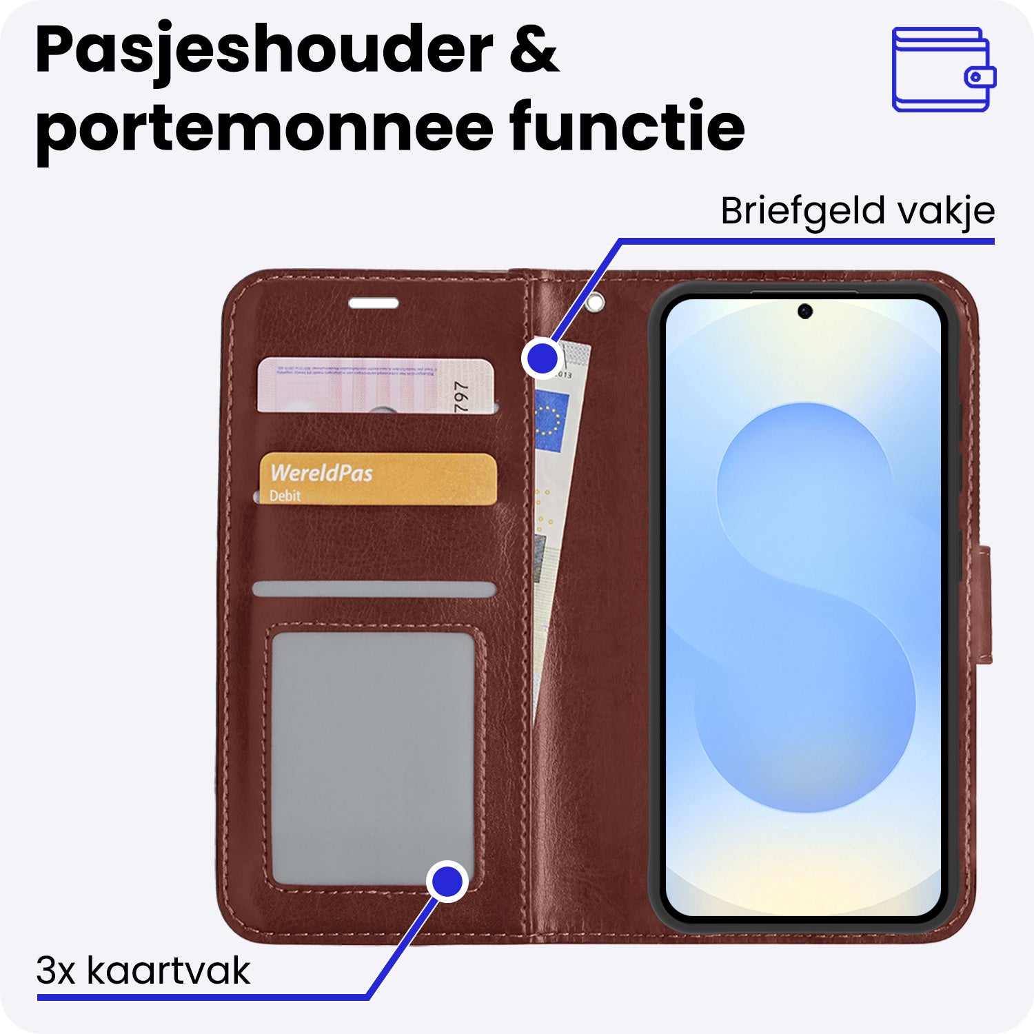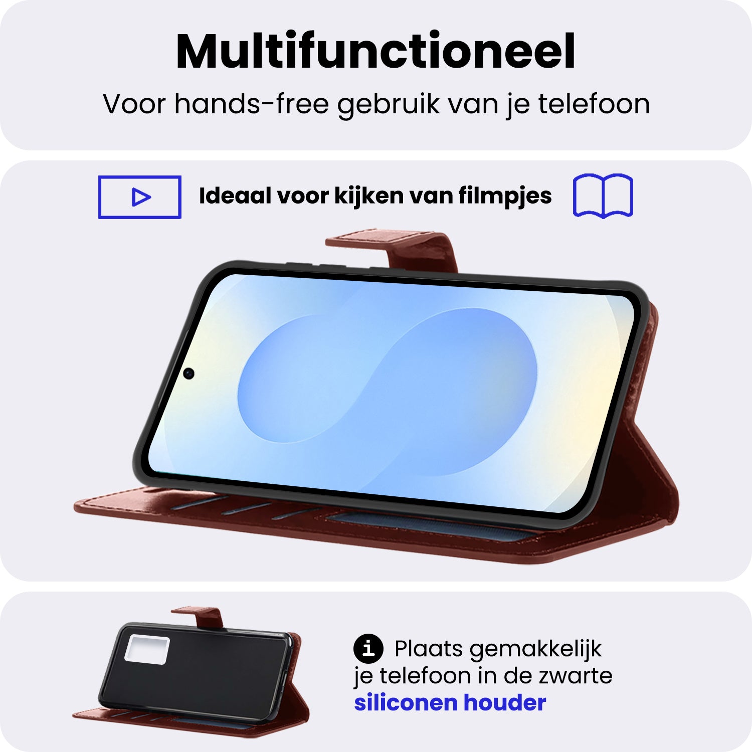 Samsung S25 Hoesje Bookcase Cover met Kaarthouder - Bruin