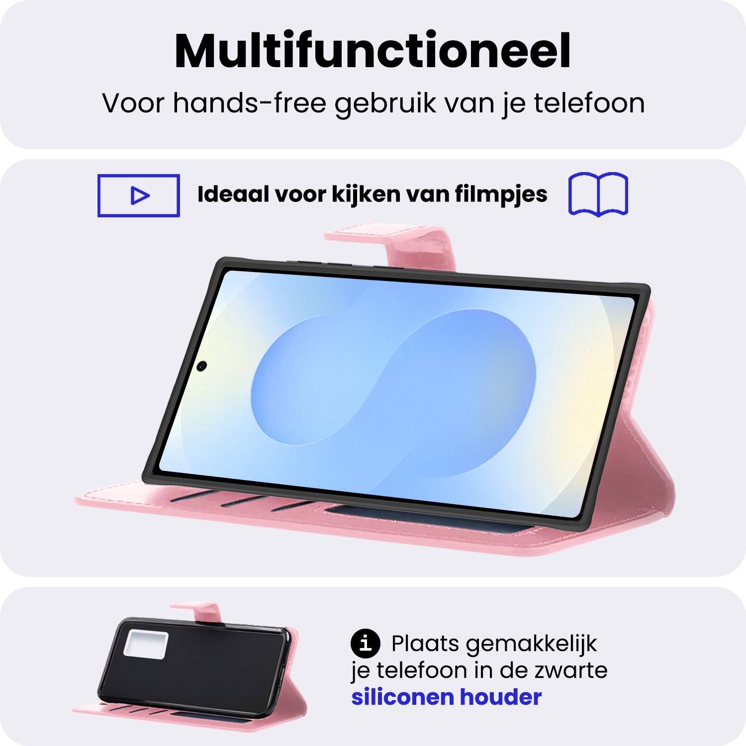 Samsung S25 Ultra Hoesje Bookcase Cover met Kaarthouder - Lichtroze