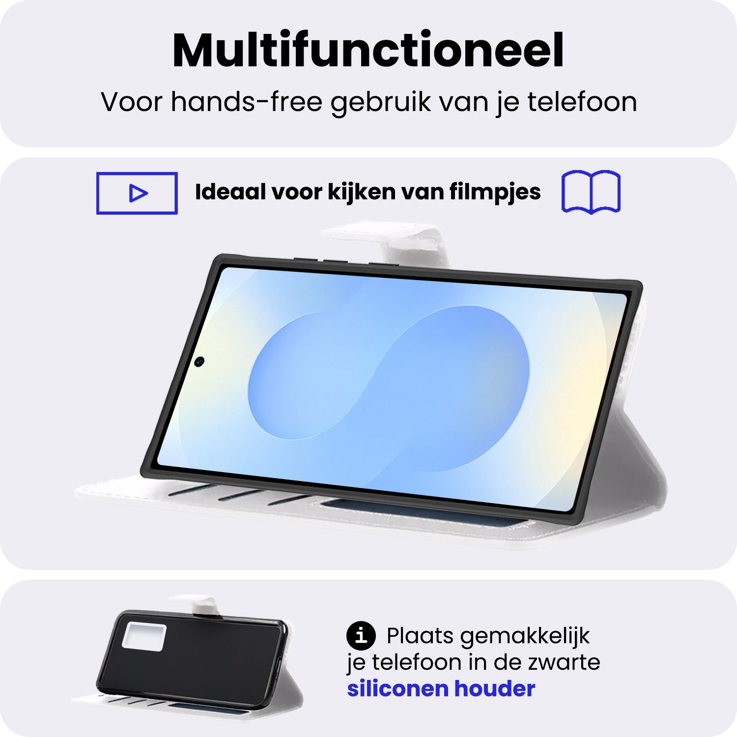 Wil je handsfree video’s bekijken of videobellen? Dankzij de ingebouwde standaardfunctie kun je je Samsung S25 Ultra eenvoudig in een comfortabele kijkhoek plaatsen. Ideaal voor entertainment of werkgerelateerde taken.