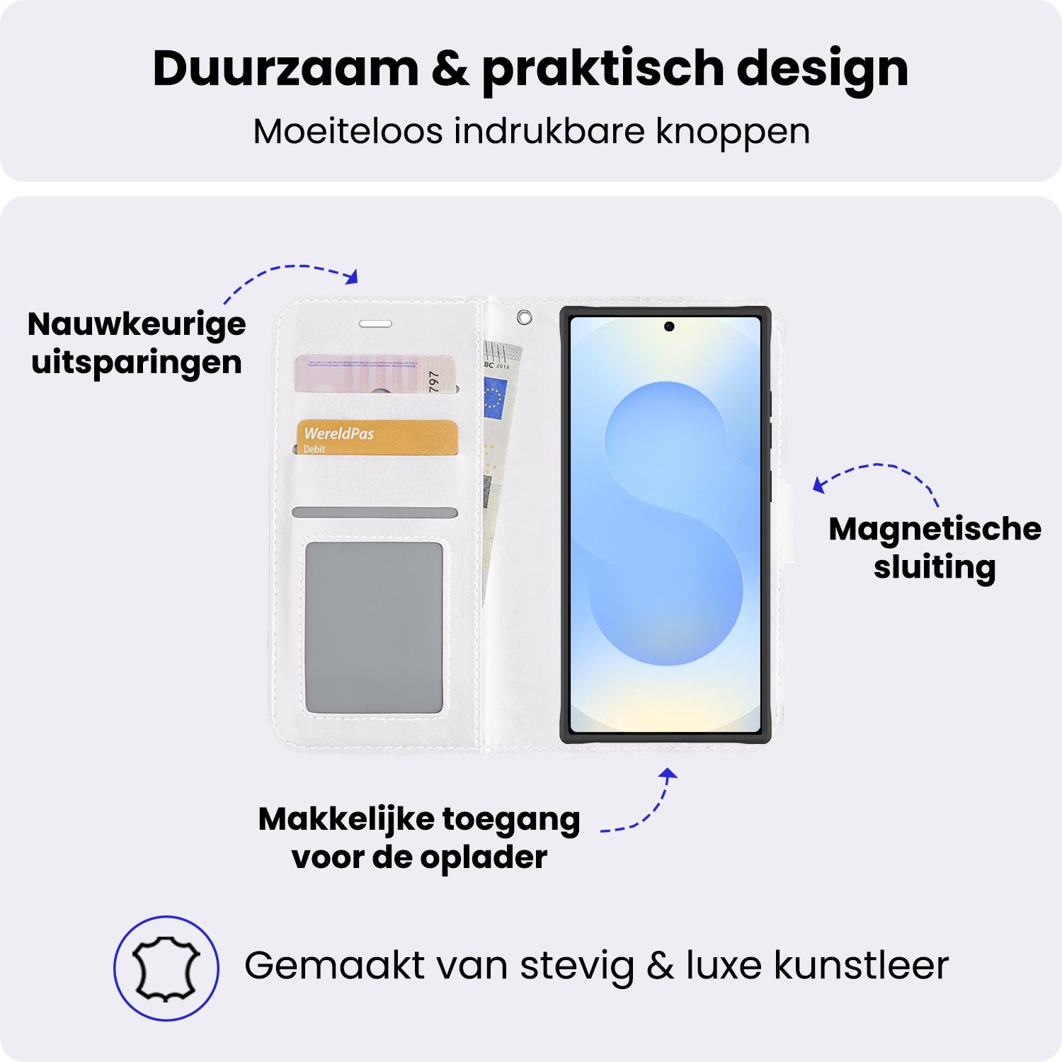 - Ruimte voor pasjes en briefgeld
