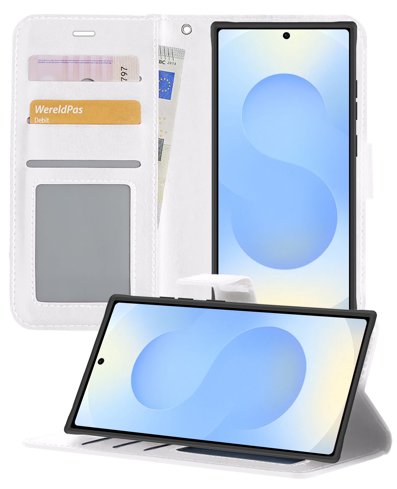 Samsung S25 Ultra Hoesje Bookcase Cover met Kaarthouder - Wit