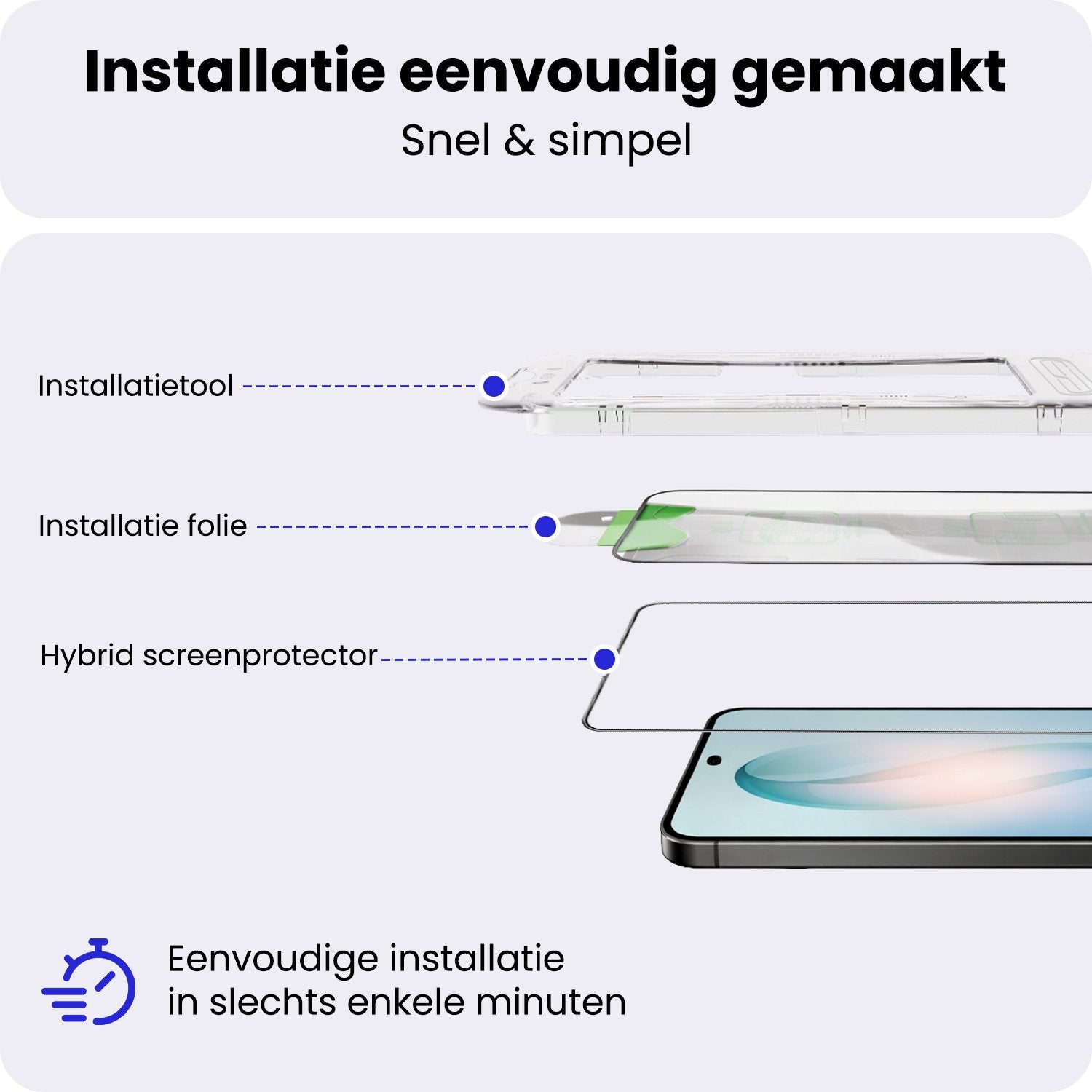 Maak je ervaring compleet met deze hybride screenprotector met installatieframe voor de Samsung S26. **Bestel nu en geniet van flexibele, duurzame en naadloze schermbescherming!**