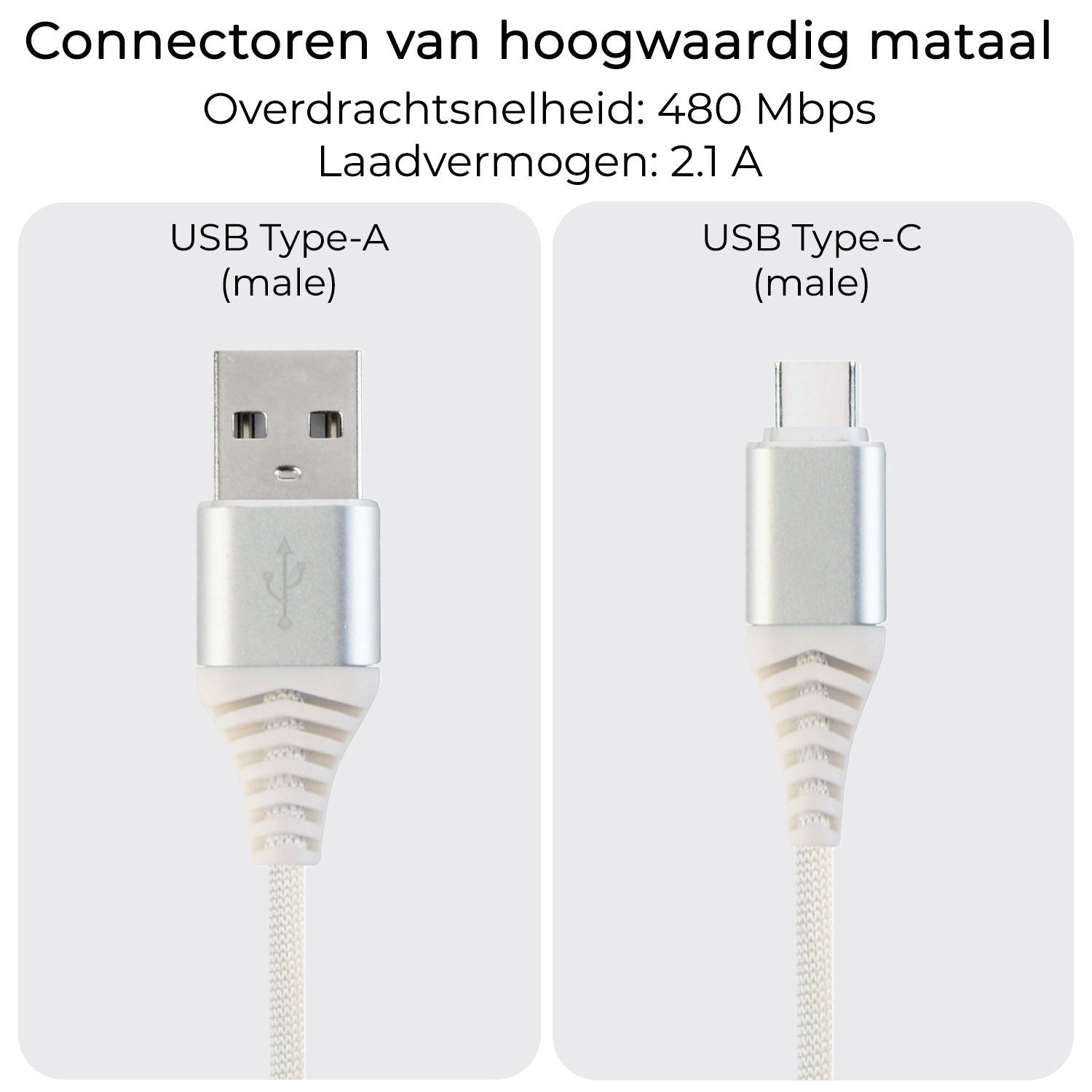 Geniet van hoge overdrachtssnelheden tot 480 Mbps dankzij de USB Type-A (male) en USB Type-C (male) connectoren, die een snelle synchronisatie van foto's, muziek en bestanden mogelijk maken. Met een laadcapaciteit van 2,1 A blijven je apparaten efficiënt en snel opgeladen, terwijl de metalen connectorstijl de slijtvastheid verhoogt en een luxe uitstraling toevoegt aan je digitale accessoires. Perfect voor iedereen die het beste uit hun technologie wil halen zonder in te boeten op stijl.