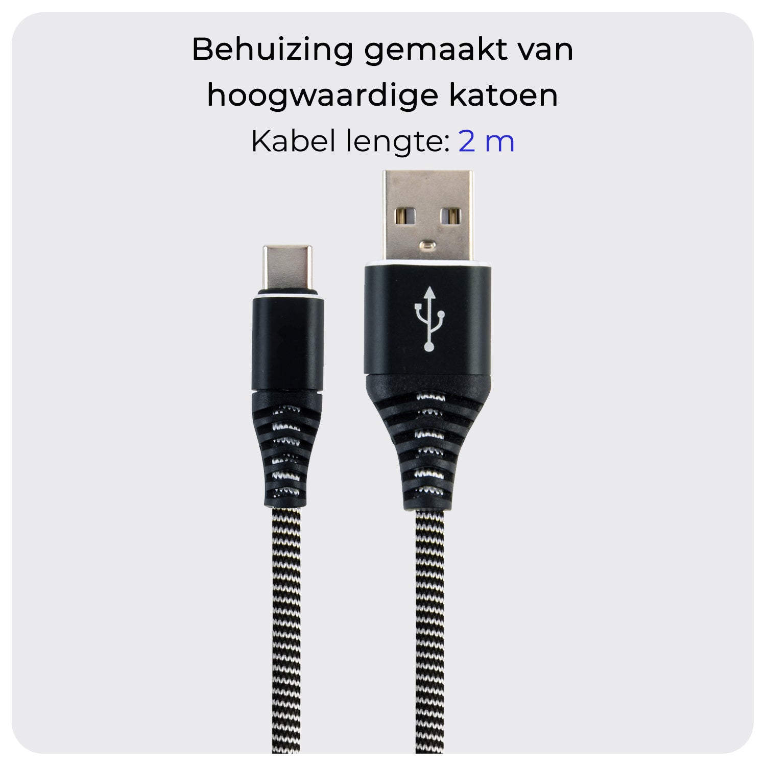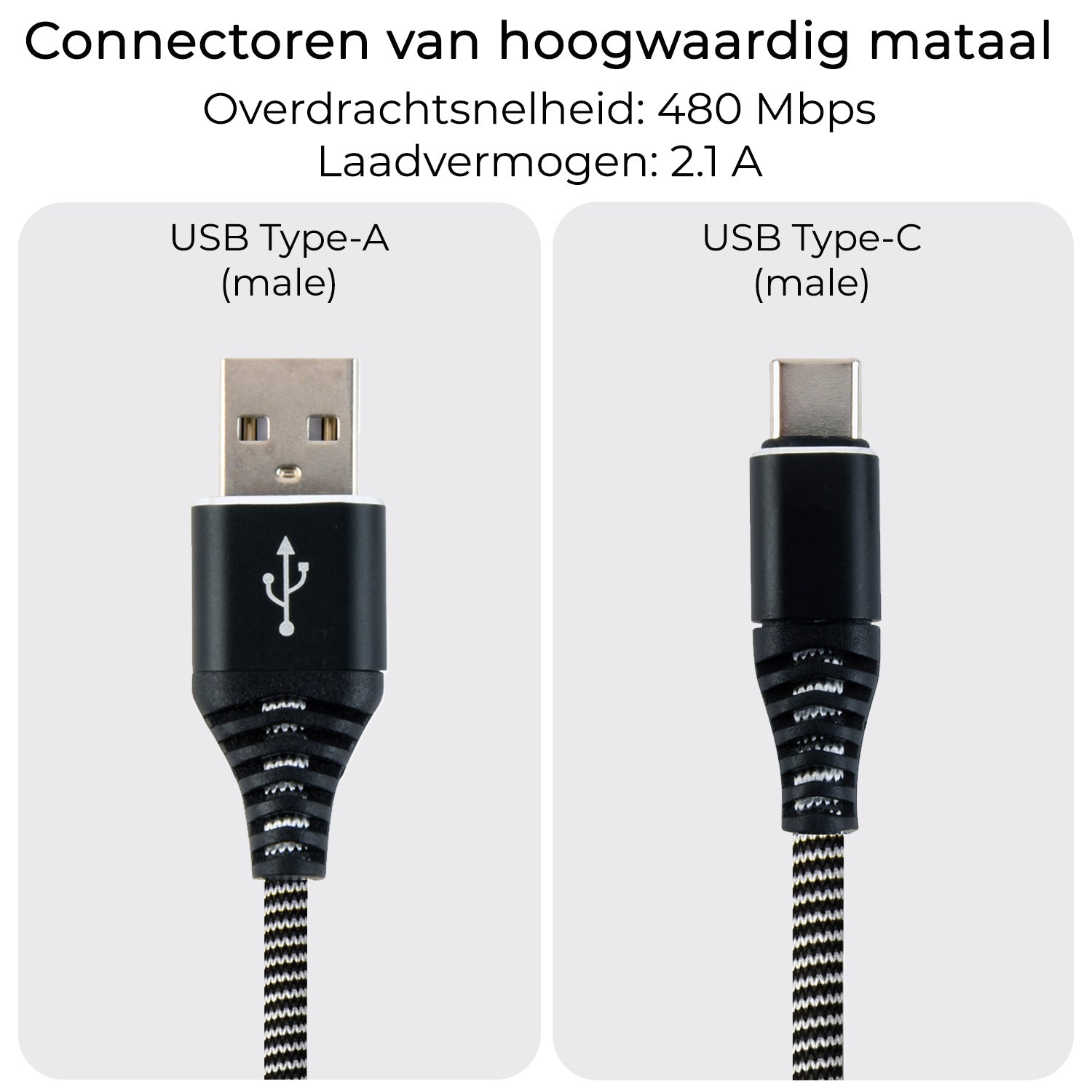 USB-C Kabels Oplaadkabel Datakabel USB C Kabel Nylon Gevlochten - USB C naar USB A Kabel - USB C Oplader - 2 meter - Zwart/Wit