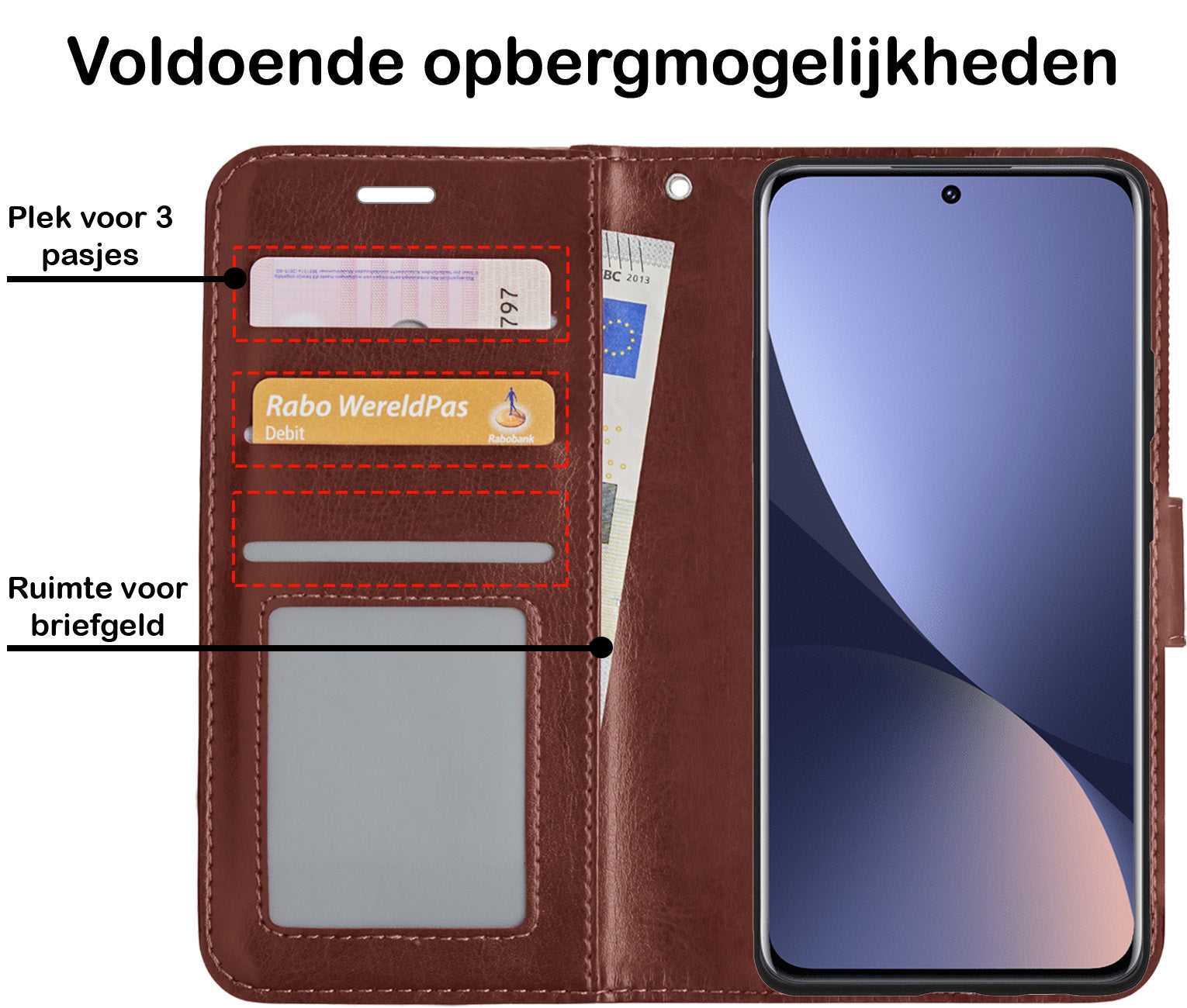 Xiaomi 12X Hoesje Bookcase Cover met Kaarthouder - Bruin