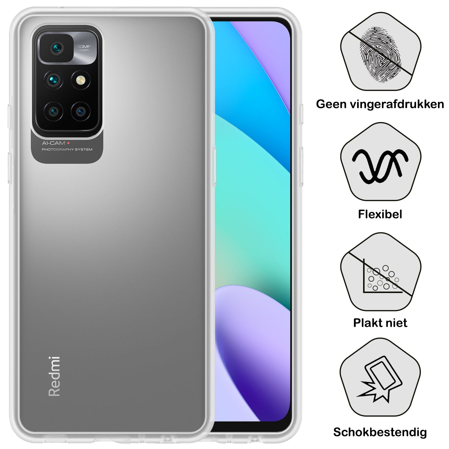 Dit hoesje is verkrijgbaar in verschillende kleuren, zodat je eenvoudig een stijl kiest die bij je past. Ga voor een neutrale tint voor een subtiele look of kies een opvallende kleur om je Xiaomi Redmi 10 2022 een persoonlijke touch te geven. Voor wie het originele design van de telefoon wil behouden, is er ook een transparante variant beschikbaar.