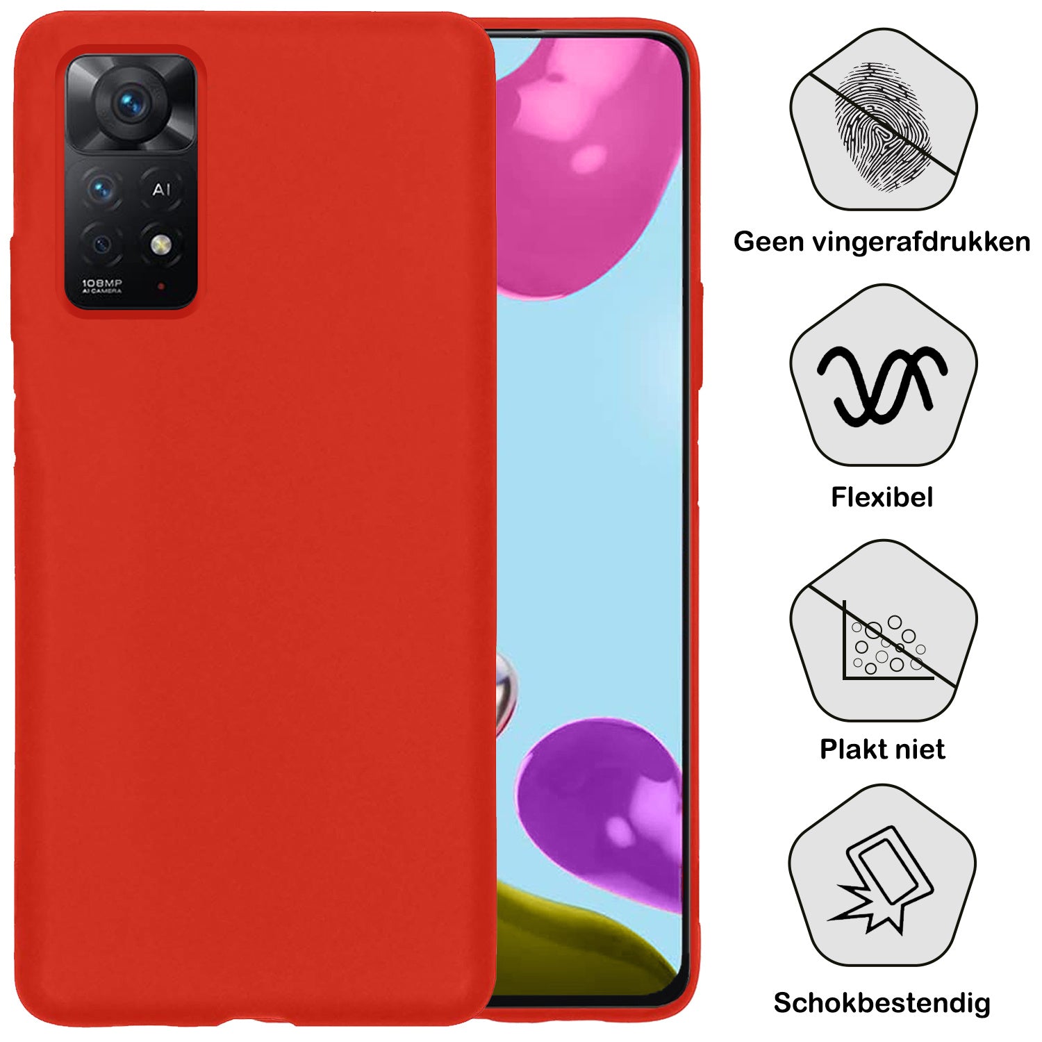 Dit hoesje is verkrijgbaar in verschillende kleuren, zodat je eenvoudig een stijl kiest die bij je past. Ga voor een neutrale tint voor een subtiele look of kies een opvallende kleur om je Xiaomi Redmi Note 11 een persoonlijke touch te geven. Voor wie het originele design van de telefoon wil behouden, is er ook een transparante variant beschikbaar.